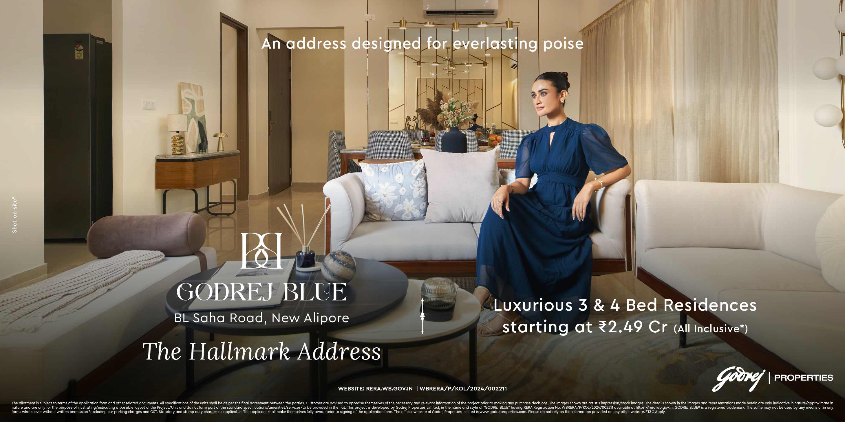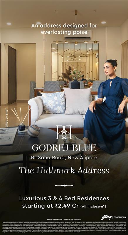 The allotment is subject to terms of the application form and other related documents. All specifications of the units shall be as per the final agreement between the parties. Customer are advised to appraise themselves of the necessary and relevant information of the project prior to making any purchase decisions. The images shown are artist’s impression/stock images. The details shown in the images and representations made herein are only indicative in nature/approximate in nature and are only for the purpose of illustrating/indicating a possible layout of the Project/Unit and do not form part of the standard specifications/amenities/services/to be provided in the flat. This project is developed by Godrej Properties Limited, in the name and style of “GODREJ BLUE” having RERA Registration No. WBRERA/P/KOL/2024/002211available at https://rera.wb.gov.in. GODREJ BLUE® is a registered trademark. The same may not be used by any means or in any forms whatsoever without written permission *excluding car parking charges and GST. Statutory and stamp duty charges as applicable. The applicant shall make themselves fully aware prior to signing of the application form. T&C apply. The official website of Godrej Properties Limited is www.godrejproperties.com. Please do not rely on the information provided on any other website.